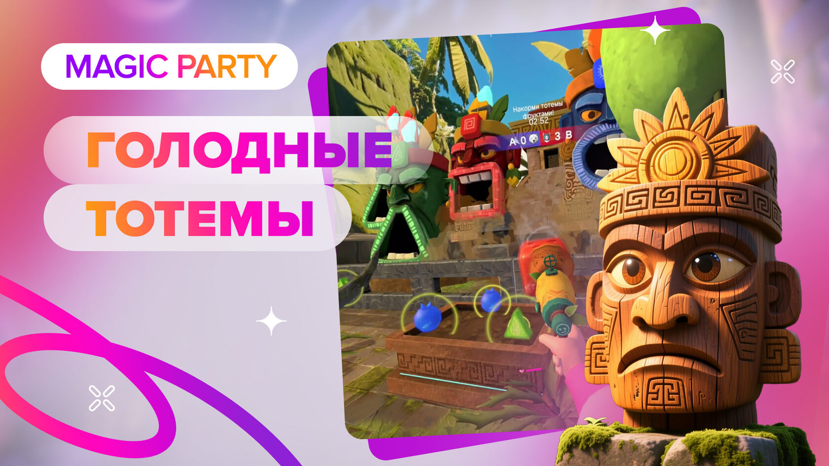 Колдовство пробудило древние тотемы, которые жаждут угощения! Игрокам предстоит накормить магических идолов правильными фруктами. Необходимо быть очень внимательными — каждый тотем предпочитает особый фрукт.