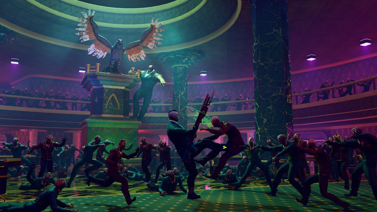Персонал казино ZOMBIE VEGAS приветствует всех выживших в игровой комнате. Когда-то здесь царили азарт и веселье, а сейчас это обитель заражённых зомби-вирусом роботов.